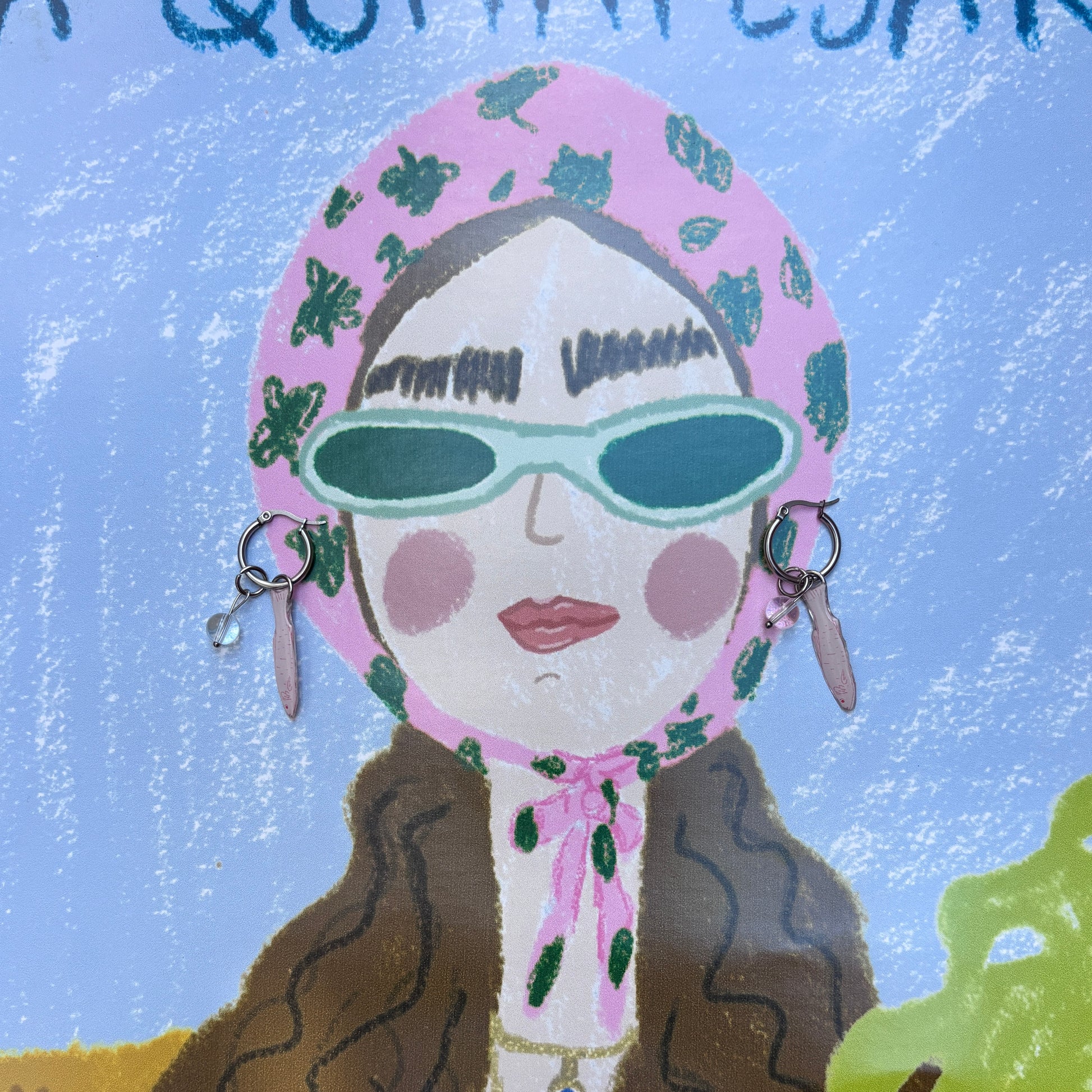 Nuestros aretes están hechos con resina y acero inoxidable, ligeros, resistentes al agua y pensados para acompañarte todos los días. Cada par lleva ilustraciones de Quitapesares, transformadas en piezas pequeñas que llevan arte contigo a donde vayas.