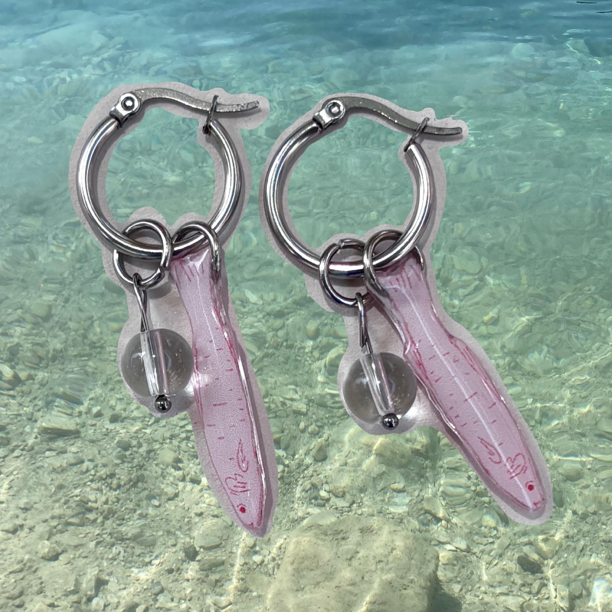 Par de aretes peces rosa con rojo chicos