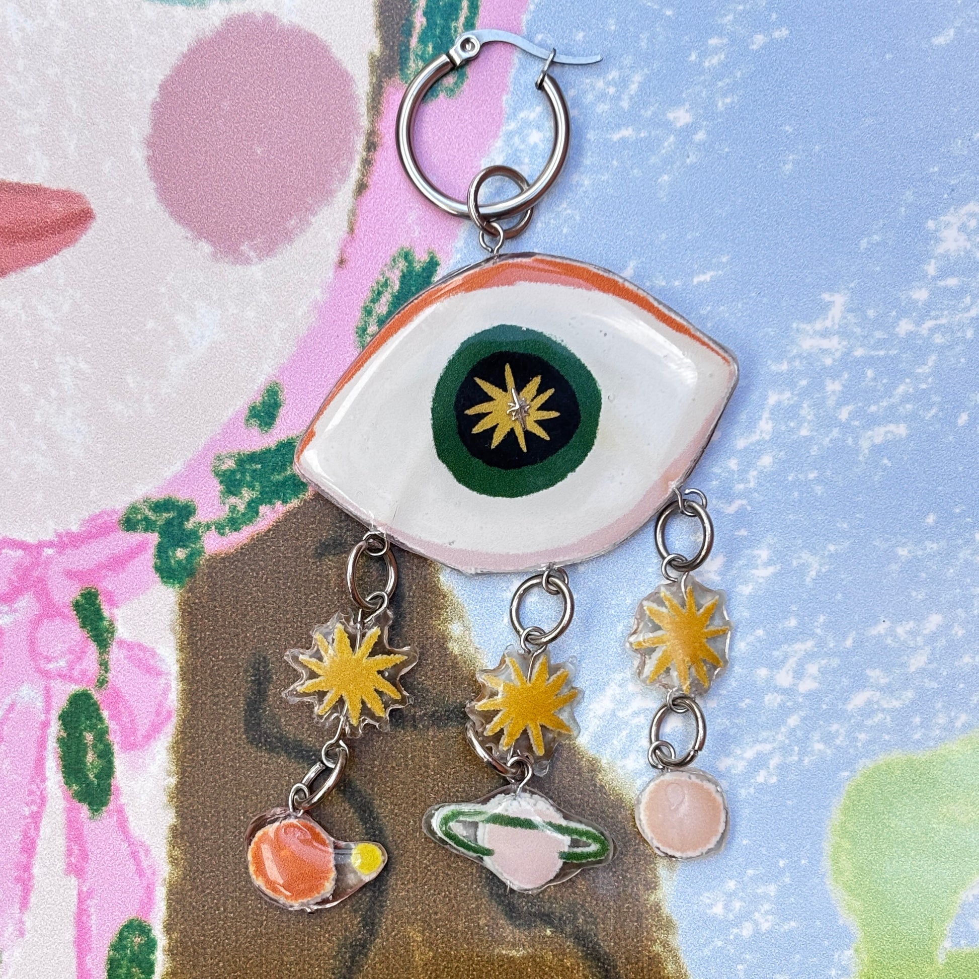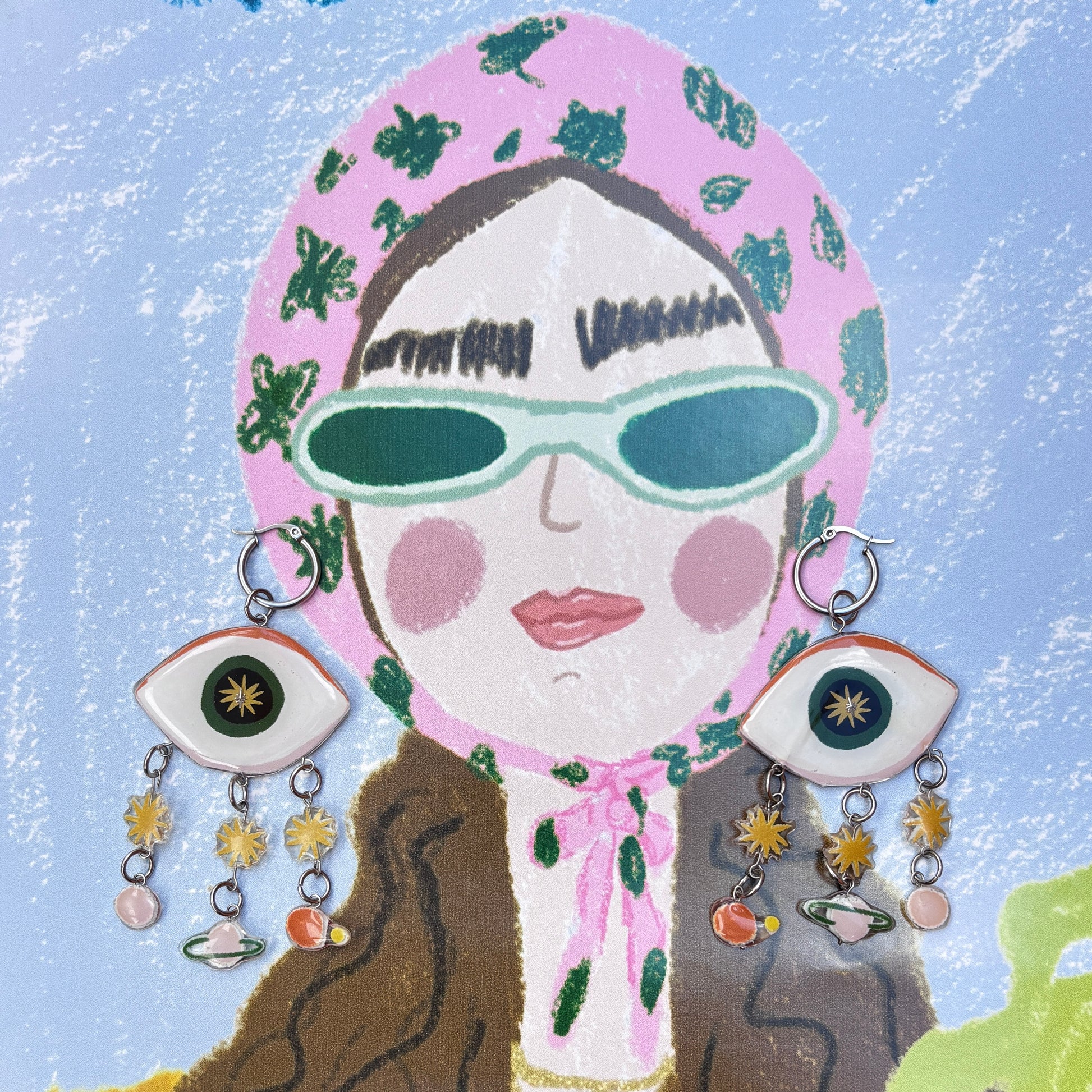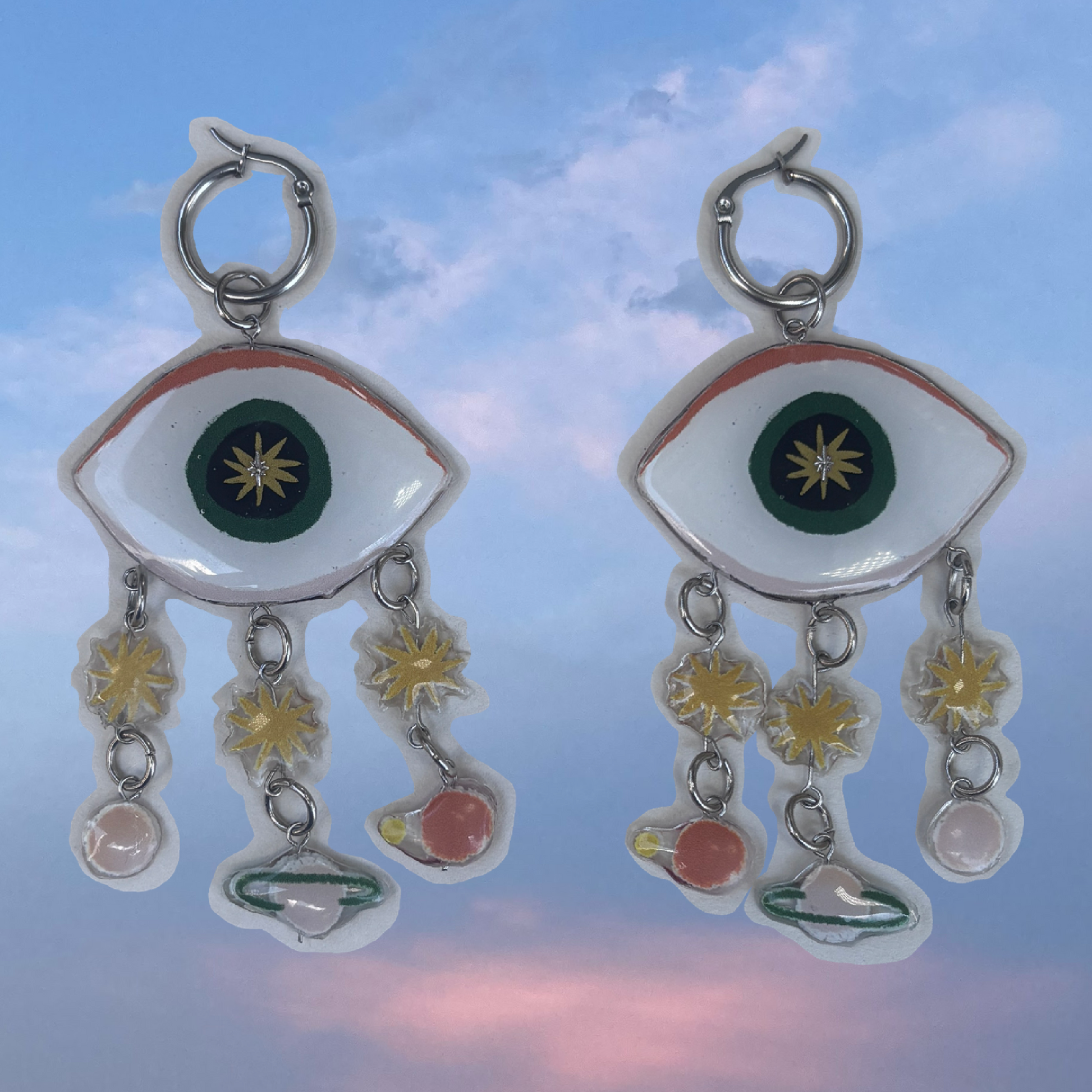 Nuestros aretes están hechos con resina y acero inoxidable, ligeros, resistentes al agua y pensados para acompañarte todos los días. Cada par lleva ilustraciones de Quitapesares, transformadas en piezas pequeñas que llevan arte contigo a donde vayas.
